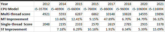 Small performance gains each year, but never a compelling upgrade. In 2017 when AMD finally started to make a comeback, in response Intel gave a token core bump.